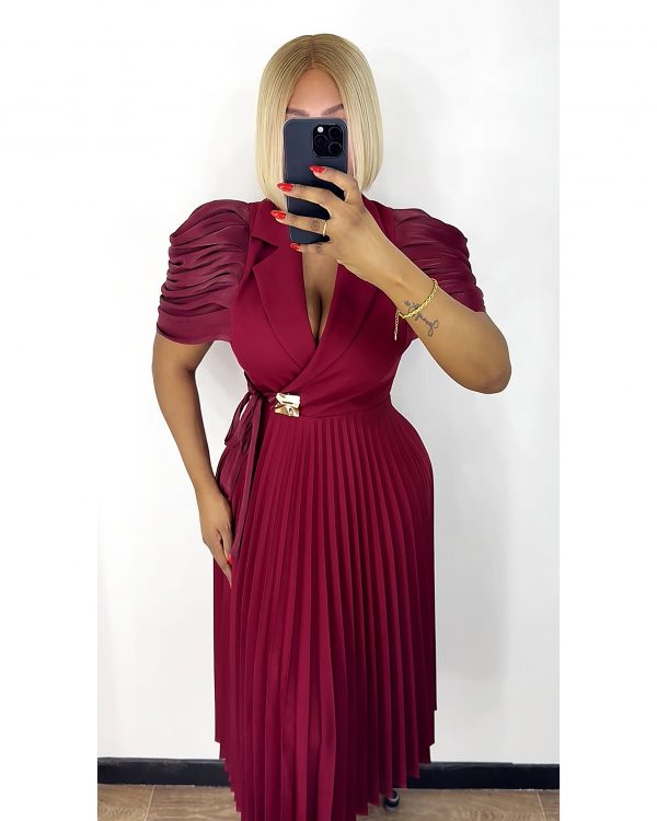ROBE PLISSÉE BI MATIÈRE ROUGE