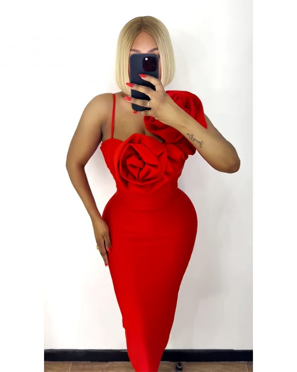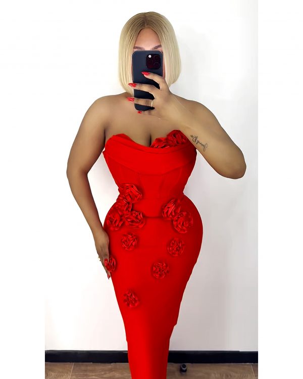 ROBE BUSTIER AVEC FLEURS ROUGE