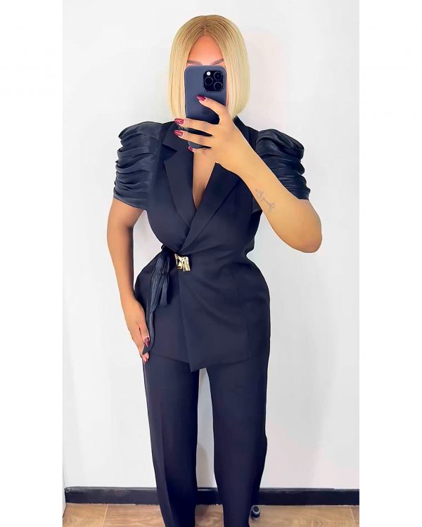 ENSEMBLE VESTE BI MATIÈRE NOIR