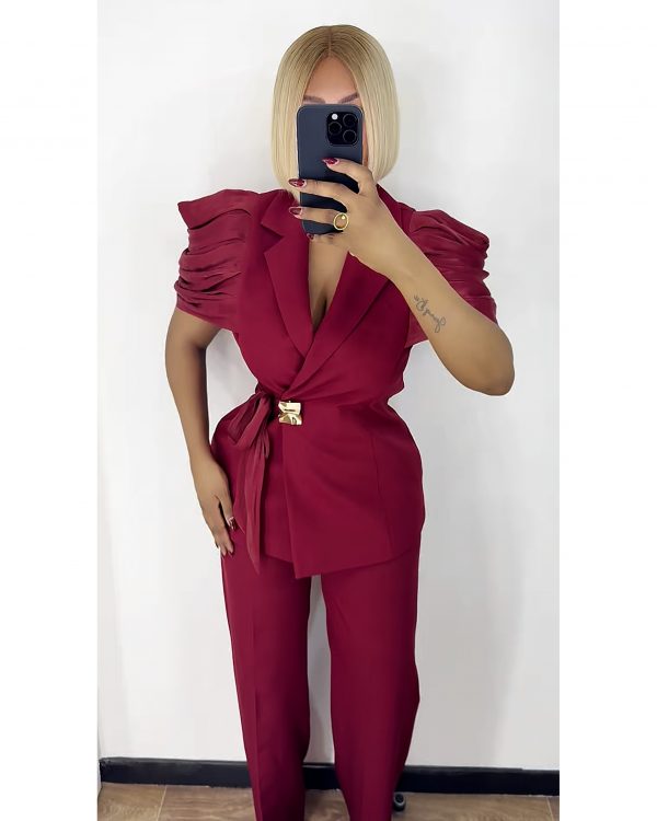 ENSEMBLE VESTE BI MATIÈRE ROUGE