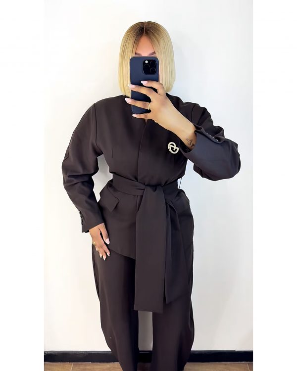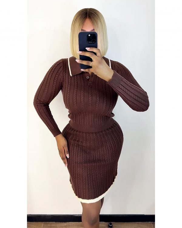 ENSEMBLE À BOUTONS DORÉS MARRON