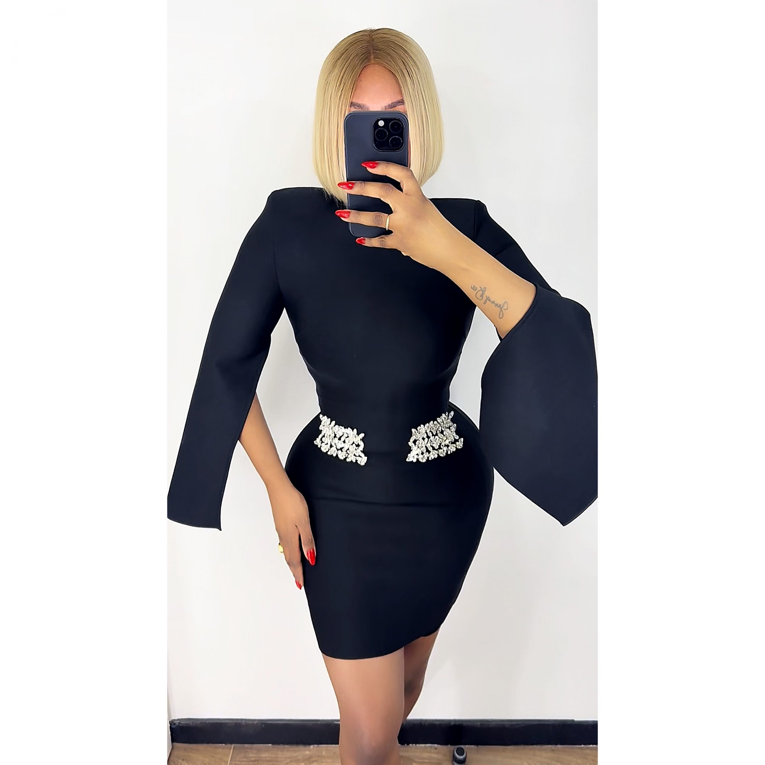 ROBE BANDAGE POCHE STRASS NOIR